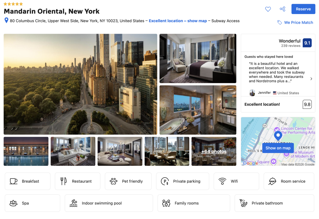 Mandarin Oriental New York can be booked through the official Mandarin Oriental website, premium travel agencies, and global hotel booking platforms. Booking directly often provides access to exclusive packages, flexible policies, and loyalty benefits.